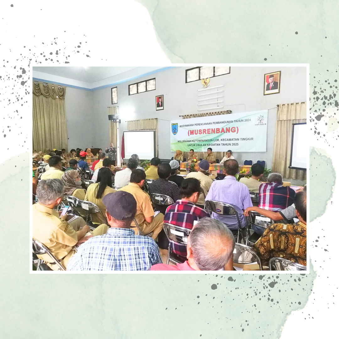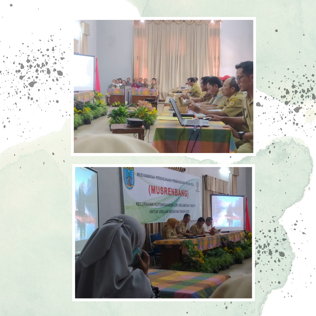 Bertempat di Kelurahan Kutowinangun Lor (Senin, 15/01/2024), Musrenbang tingkat Kelurahan dilaksanakan dengan dihadiri oleh Camat Tingkir, Ketua LPMK, beberapa Tokoh Masyarakat, Tokoh Agama, Ketua RW se-Kelurahan Kutowinangun Lor, Kelsi, Karang Taruna, dan beberapa OPD Salatiga diantaranya Dinas Persip, DP3APPKB, Dinas Pendidikan, Dinas Sosial, DKK, DInas Perkim, DPUPR, Dinas LH dan Bappeda.