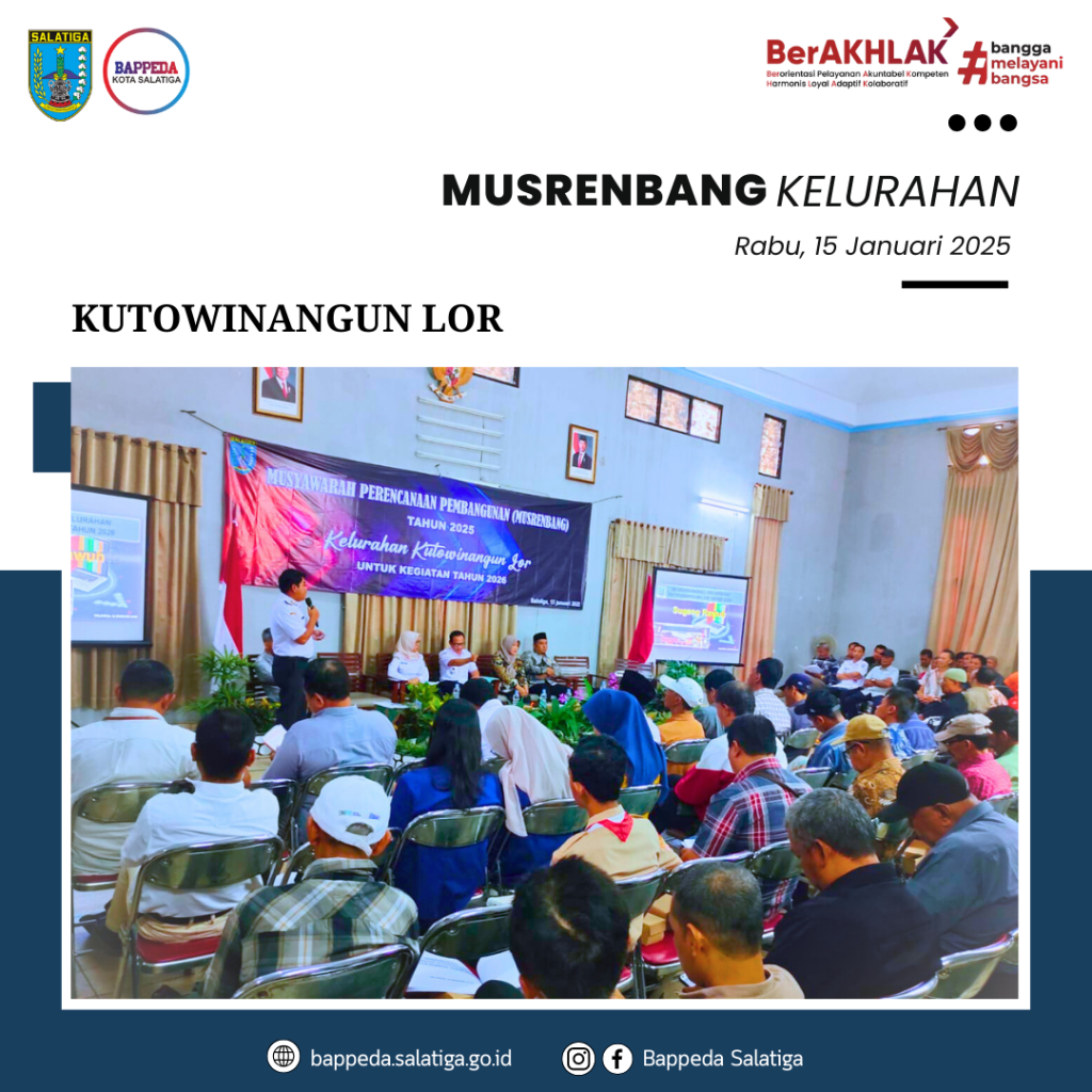 Rabu, 15 Januari 2025, telah dilaksanakan Musrenbang di Kelurahan Kutowinangun Lor. Berikut adalah dokumentasi kegiatannya.
