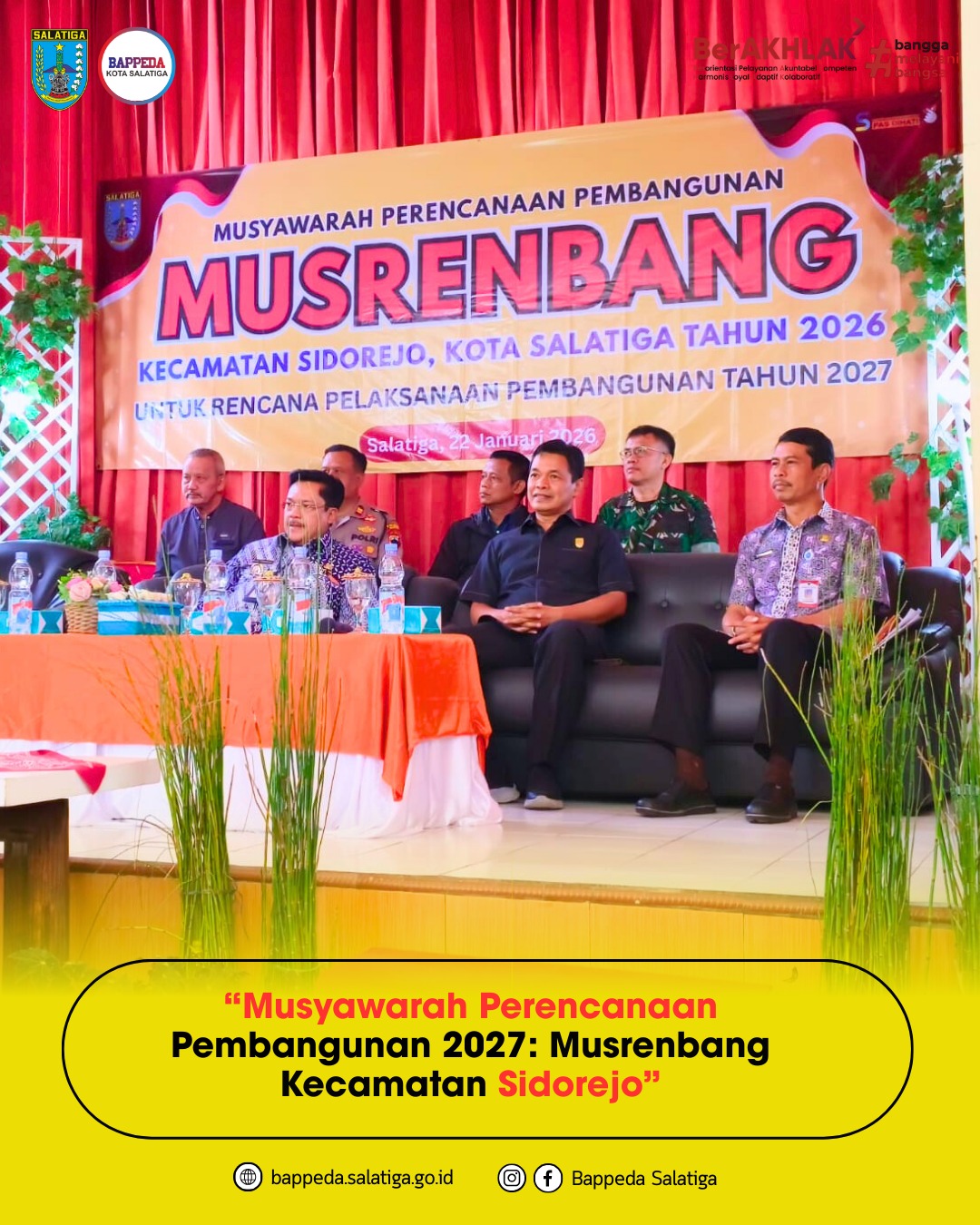 Rabu, 21 Januari 2026 – Aula Kecamatan Sidomukti, Jl. Hasanudin 116A Salatiga Musyawarah Perencanaan Pembangunan (Musrenbang) di tingkat Kecamatan Sidomukti…